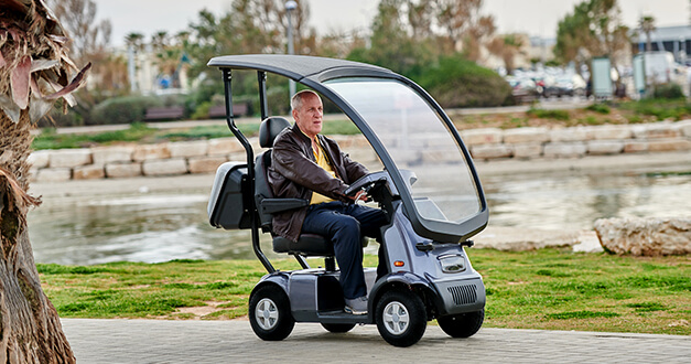 Seguro y cómodo, con amortiguadores bien calibrados, el Afiscooter C4, un scooter de movilidad de tamaño medio con 4 ruedas, es uno de los modelos eléctricos más populares del mercado.