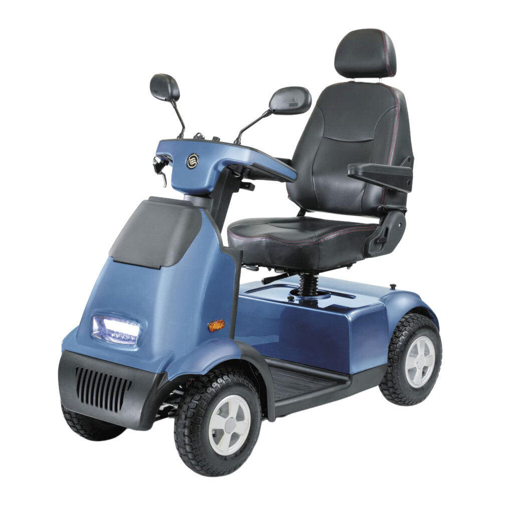 Ofrece un lujoso asiento ortopédico giratorio y un potente faro LED de amplio campo de visión. El Afiscooter C4, fácil de usar, incluye un manillar ergonómico, controles tanto para la mano izquierda como para la derecha y una pantalla de lectura sencilla.