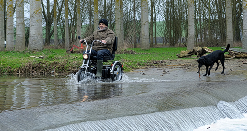 Afiscooter SE aporta el confort y la estabilidad de un scooter grande, controles sencillos y conducción suave, que, en conjunto, junto con un radio de giro muy pequeño, permiten al conductor salvar casi cualquier obstáculo, tanto en la calle como en una travesía por el campo. Salga a la playa o al club de campo, dese una vuelta por su localidad o vaya de compras… todo ello con su Afiscooter SE.