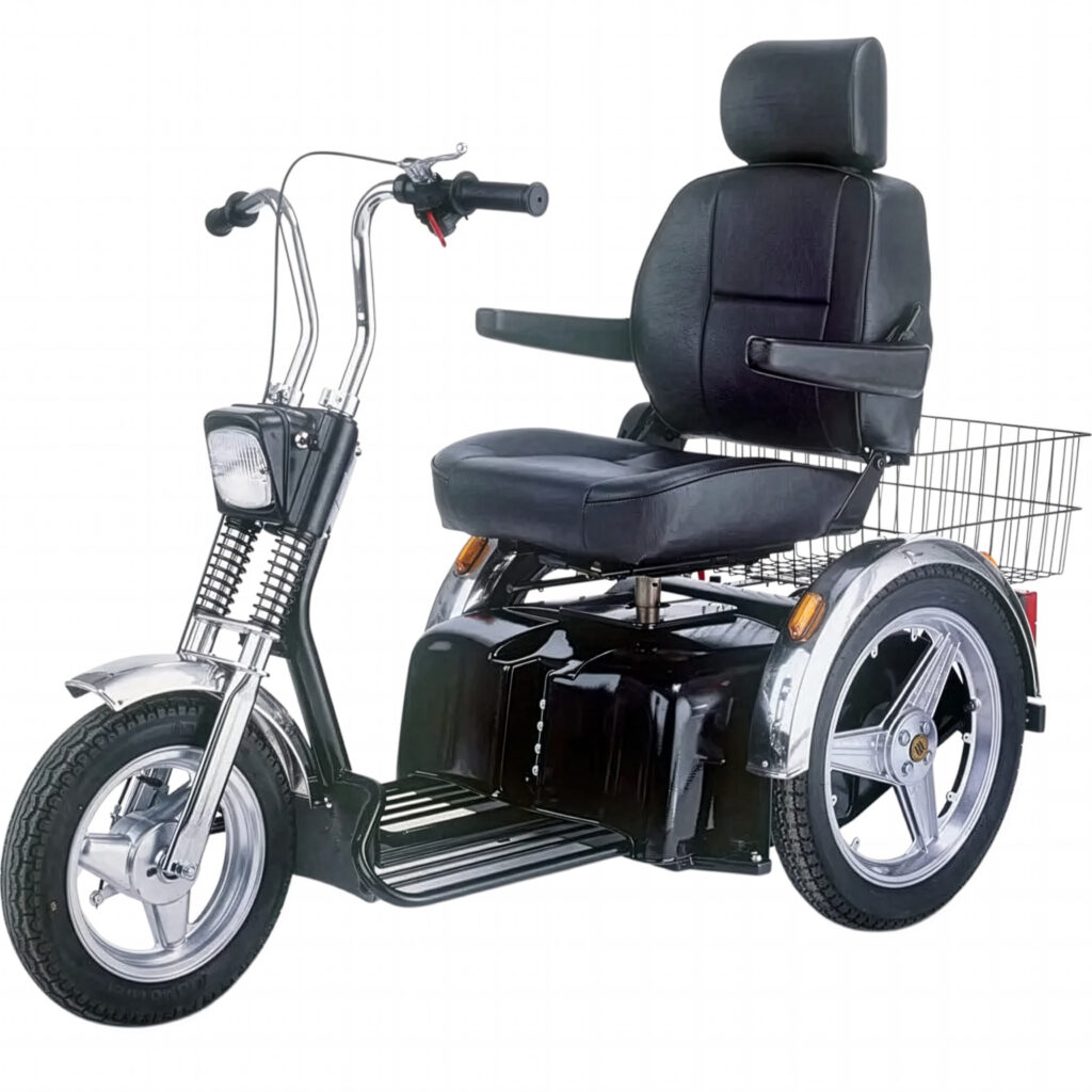 Afiscooter SE, con su diseño retro negro y cromado, incluye varias características típicas de las motocicletas. Su llamativa imagen es toda una declaración de intenciones, pero su singularidad no termina aquí, además está repleto de equipamiento. Además del estilo que desprende, el robusto chasis de acero y su potente unidad motriz hacen que este scooter sea extremadamente resistente y su trayectoria de más de 20 años de existencia avala su gran fiabilidad.