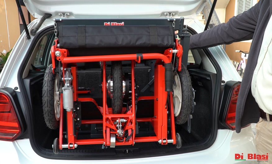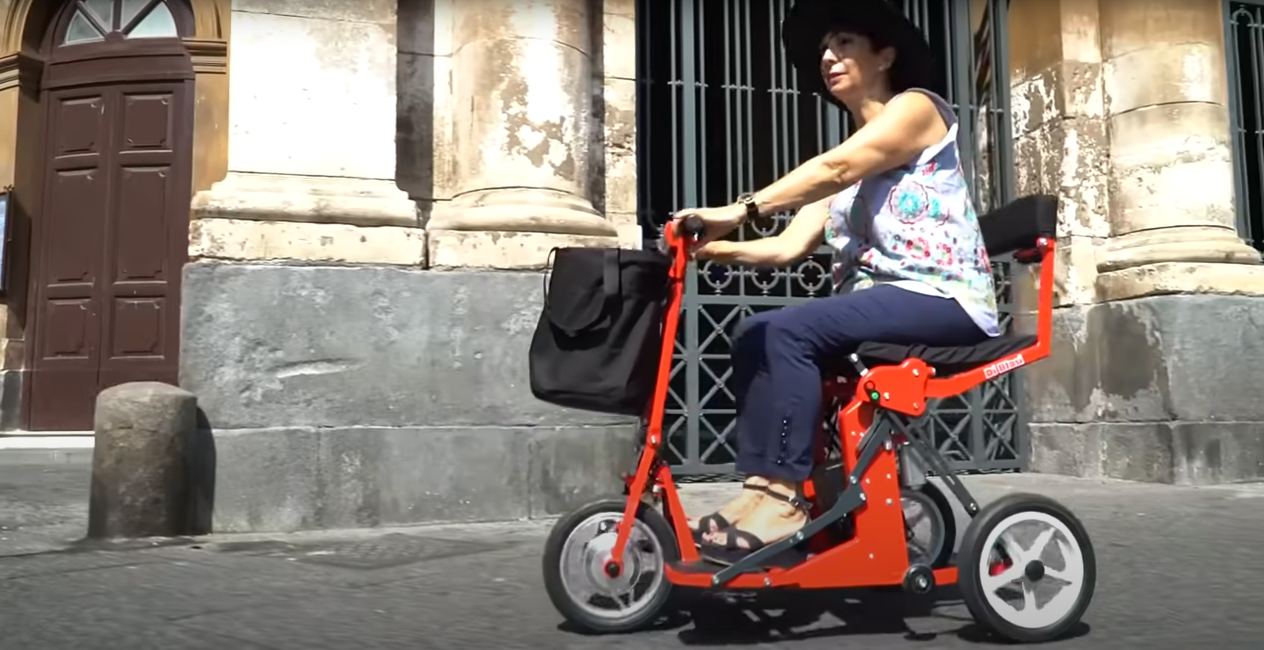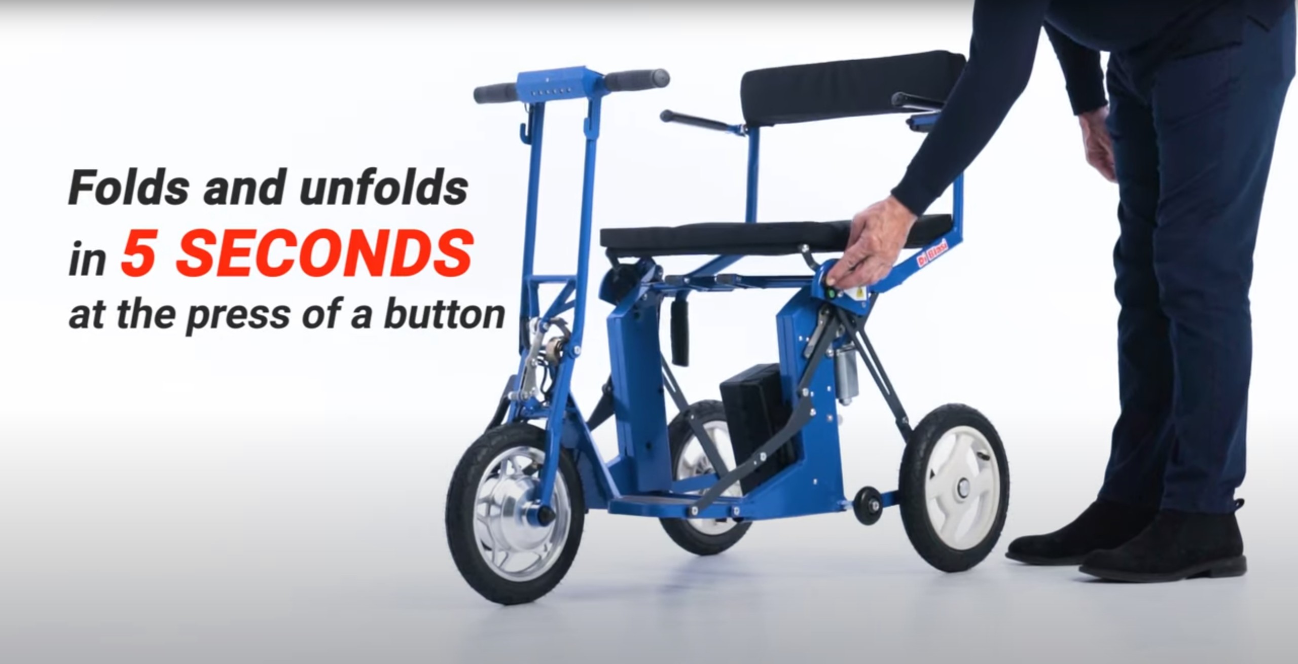 El DiBlasi es un Scooter eléctrico de 3 ruedas que puede plegarse y abrirse de modo completamente automático