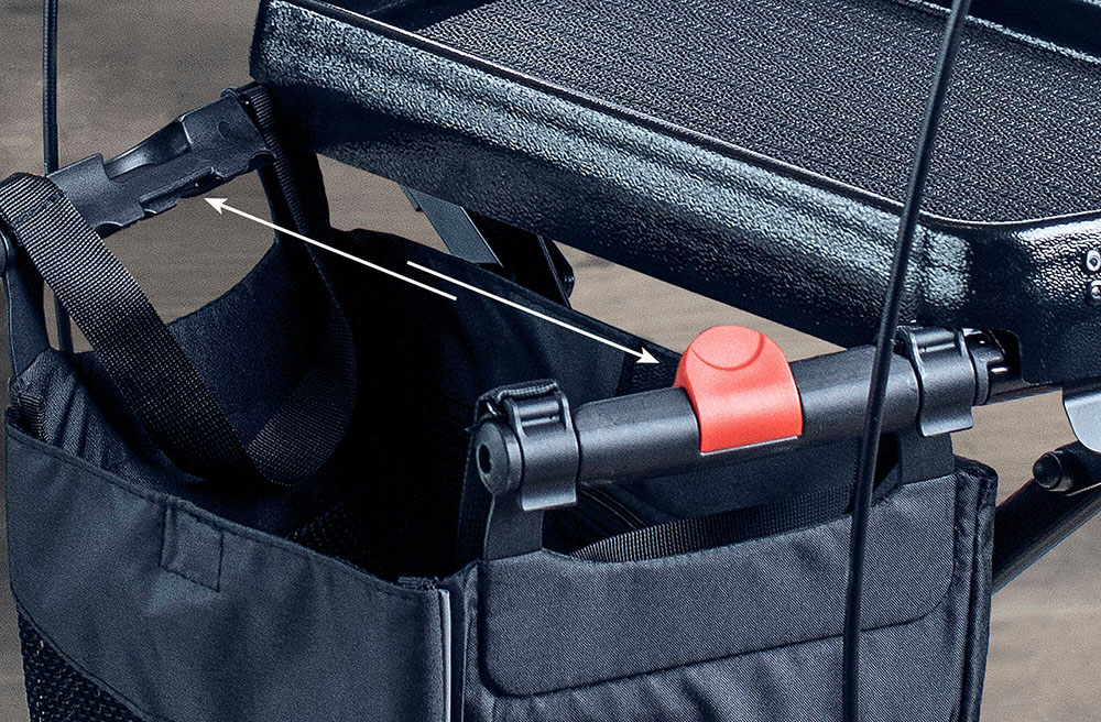 • Mecanismo de plegado sencillo – simplemente tire de la discreta asa integrada del asiento para plegarlo de forma rápida y sencilla para guardarlo o transportarlo.